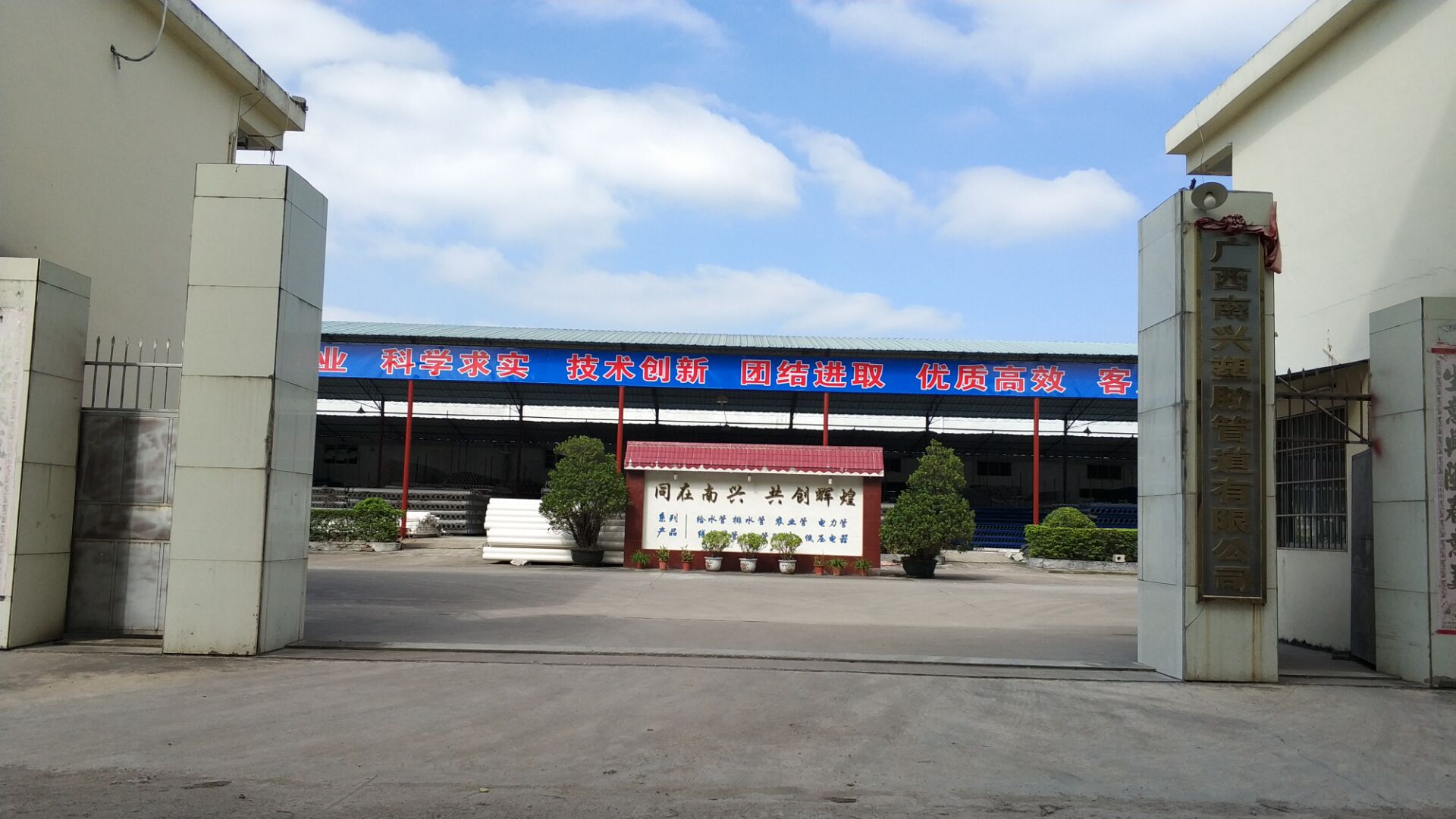 廣西南興塑膠管道有限公司成立于1986年,位于廣西中部交通十分便利的貴港市港南區工業園,公司技術力量雄厚,現有員工100多人,工程技術開發人員20余人,占地面積10000多平方米。公司主要產品有: PVC-U衛生飲用給水管、農業灌溉管、PVC-U環保排水管、PVC阻燃電線槽、電工套管、高低壓電力管、通訊管以及各種水管配件。企業通過ISO9001-2000國際質量管理體系認證。
